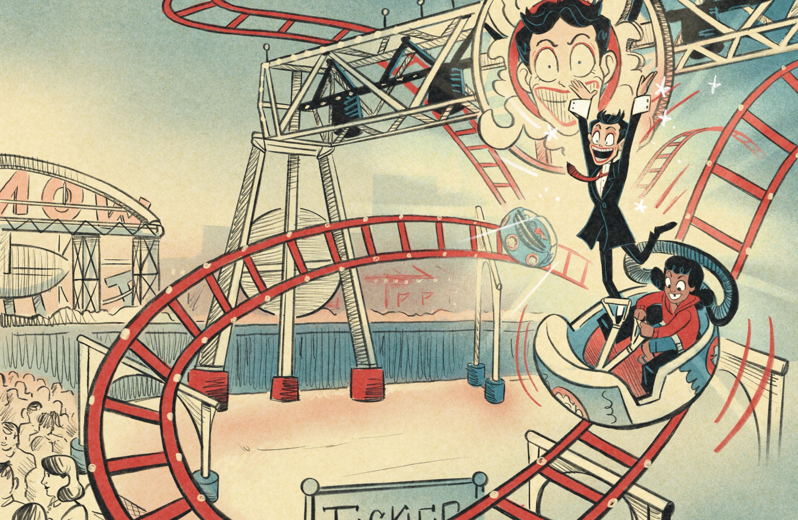 These are six of thirty-eight digital illustrations from a children's book I wrote about the history of Steeplechase Park in Coney Island. Interpreting the park's frightening mascot "Tillie" into something that kept his spirit while making him appealing for a younger audience was a delightfully fun challenge.